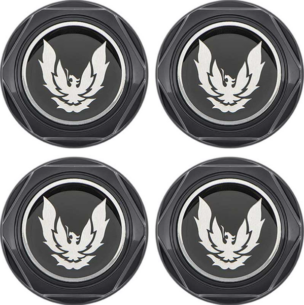 OER Gloss Black Wheel Center Cap Set With Silver Bird 1982-1992 Pontiac Firebird