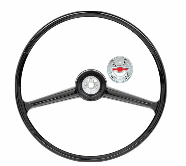 OER 2 Spoke Black Steering Wheel & Bow Tie Horn Cap 1960-1966 Chevy/GMC Truck