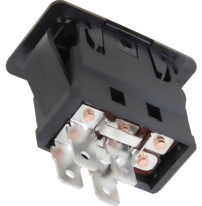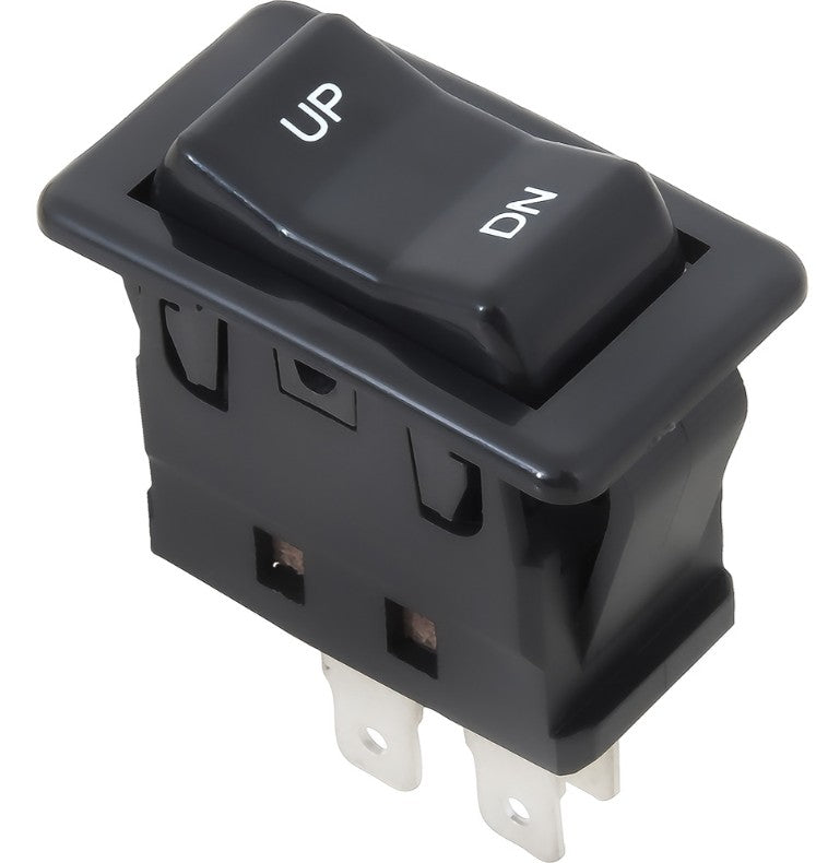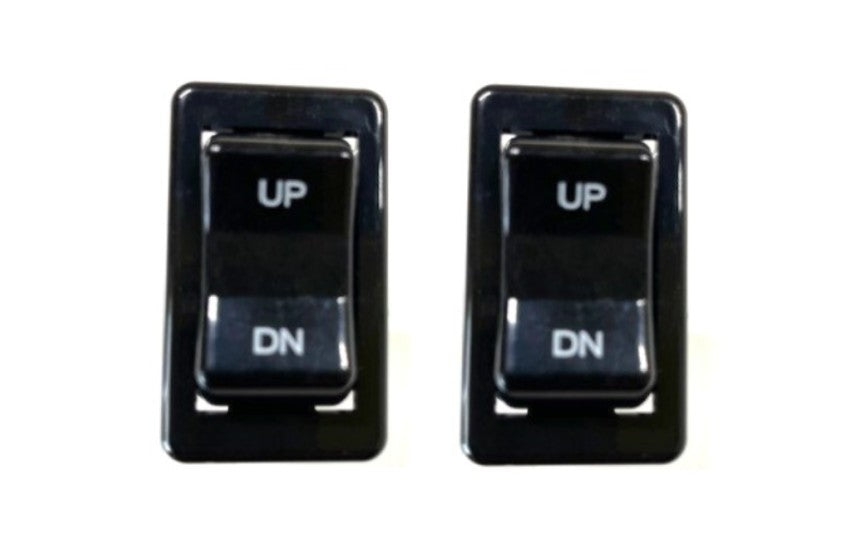 Reproduction console power door window switches for 1982-1983 Camaro, and 1982-1984 Firebird models. Replaces the original console power window switch exactly. Includes electrical prongs in rear for easy replacement of the original switch. Switch features four blade type prongs on the back with UP / DOWN wording on the switch.