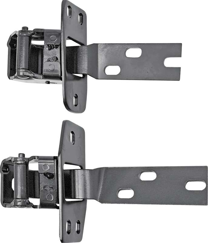 Reproduction of the original door hinges for 1947-1955 Chevrolet and GMC truck models. Each door hinge is manufactured in stamped steel replicating the original in design and functionality. Features correct mounting points for installation. This four piece set includes the upper and lower hinge for both doors. Manufactured like original for a perfect fit.